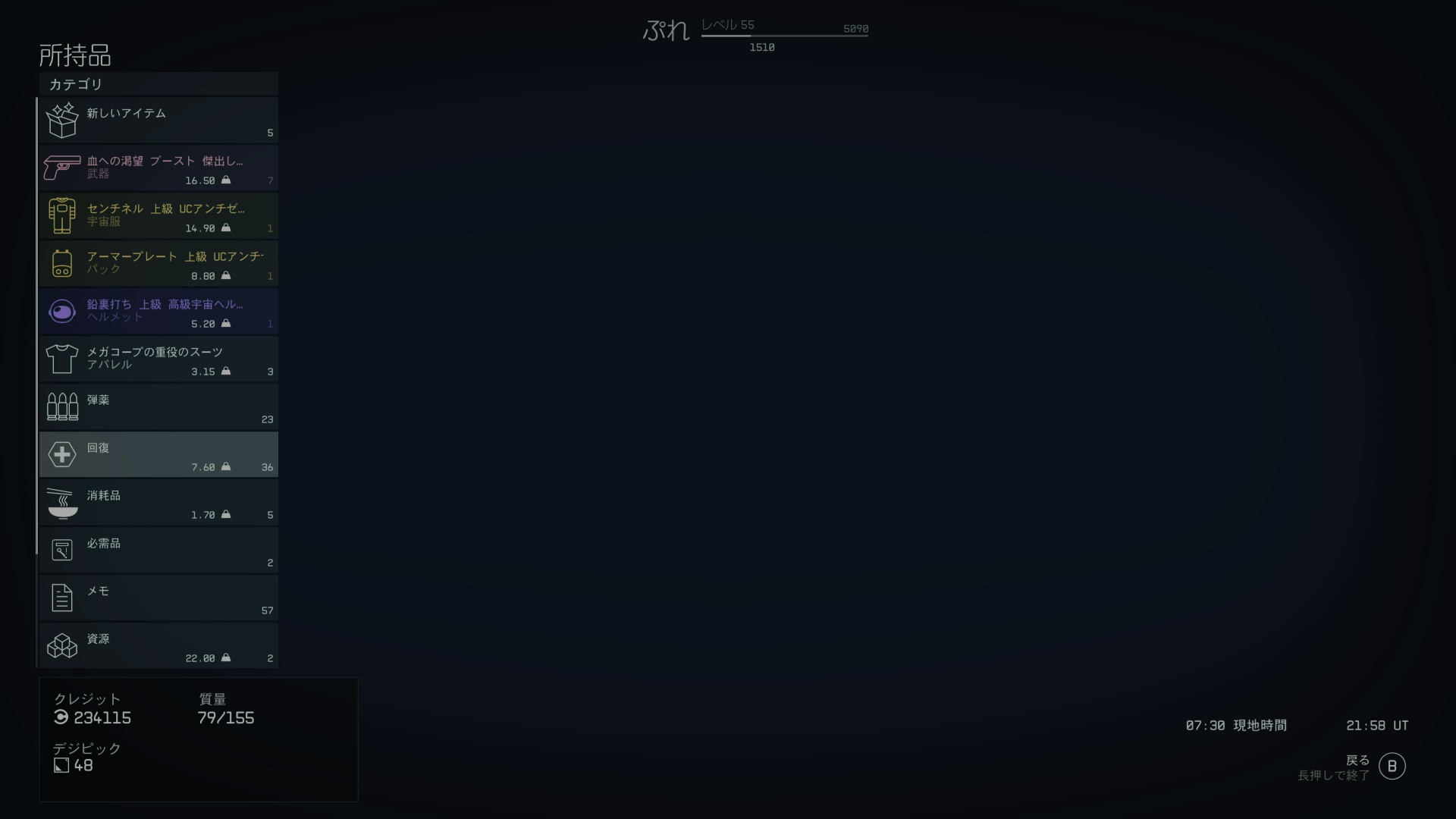 カテゴリが細かくなっている。回復と食べ物分けられたり、その他からアストラスとデジピックが必需品として分けわれた。なにより日本語のままというのが嬉しい!