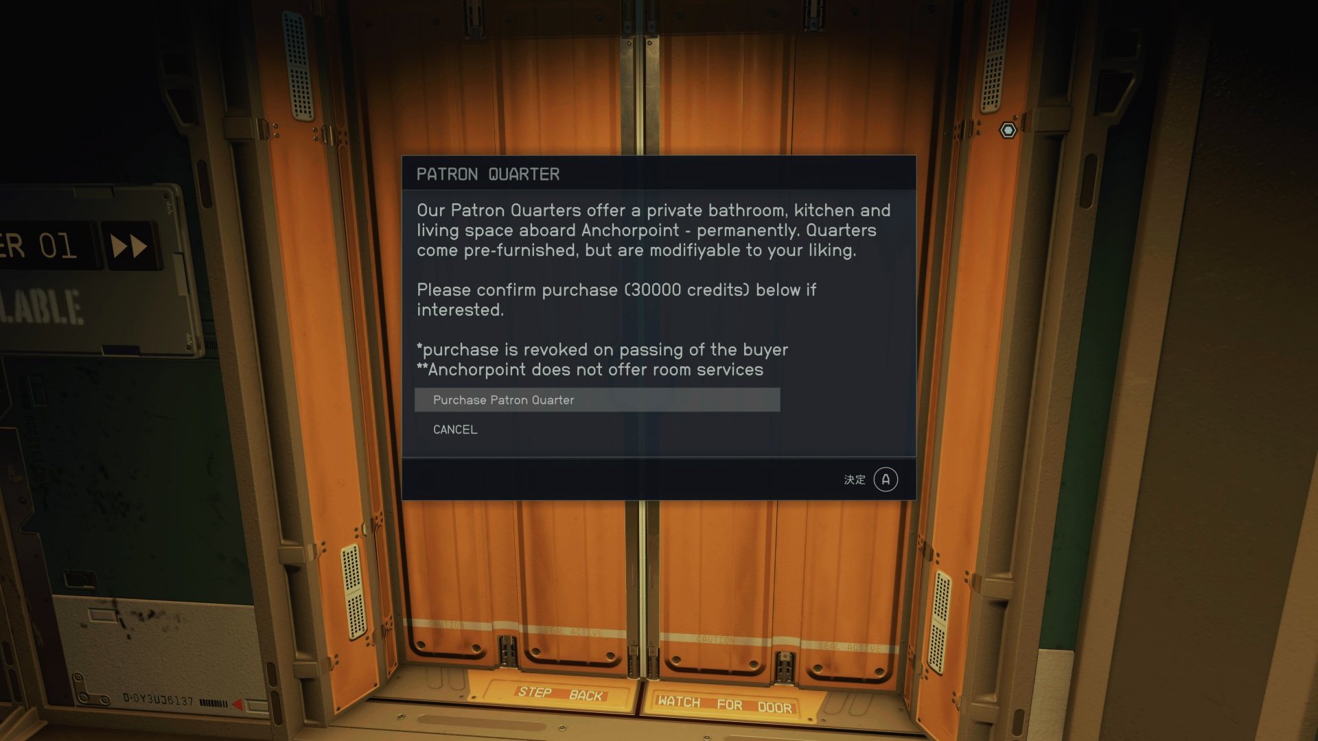 その下にプレイヤーの部屋がある。30,000クレジットで購入。