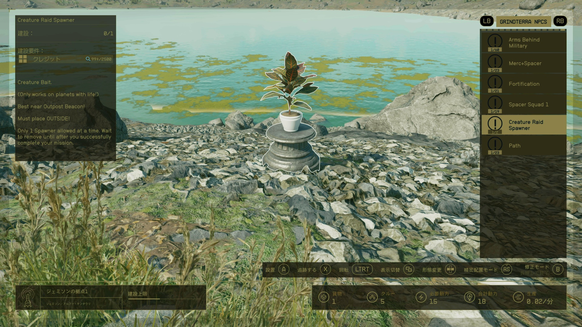 景観アイテムもマーカーとして設置するようだ。なので再起動が必要。かなり再起動が必要になるだろうけど、使いこなせば理想的な拠点が作れそう!